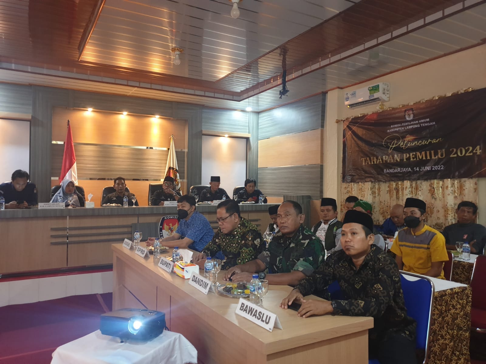KETUA BAWASLU KABUPATEN LAMPUNG TENGAH HADIRI PELUNCURAN TAHAPAN PEMILU TAHUN 2024 DI KOMISI PEMILIHAN UMUM KABUPATEN LAMPUNG TENGAH