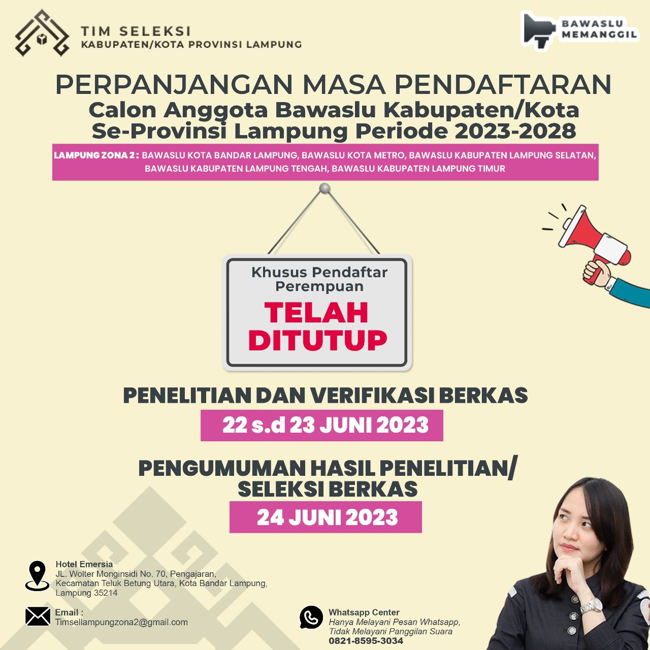 Perpanjangan Masa Pendaftaran Calon Anggota Bawaslu Kabupaten/Kota Zona 2 "Khusus Pendaftar Perempuan!"📍 (TELAH DITUTUP)